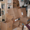 A few trips to the cardboard dumpsters around town yielded quite a treasure. Liza, if you didn't know, is quite fond of paper products. The boxes we brought home were just what she needed to get her excited about the move. There are at least twice as many boxes here as are visible. A lot of them are inside one another.