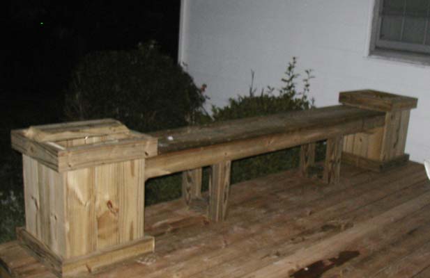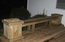 I have been trying to figure out how to make a good bench for the deck. I found some plans online but they didn't quite fit. After fussing with them a bit a new plan was created. Sadly, there were some flaws in the original plan, which corresponded to some in the new plan. Anyhow, with the help of Jul and Kos, it came out quite nicely. In the end we made a sturdy bench with two planters. I most likely will make the storage instead of planters, but we'll see. |