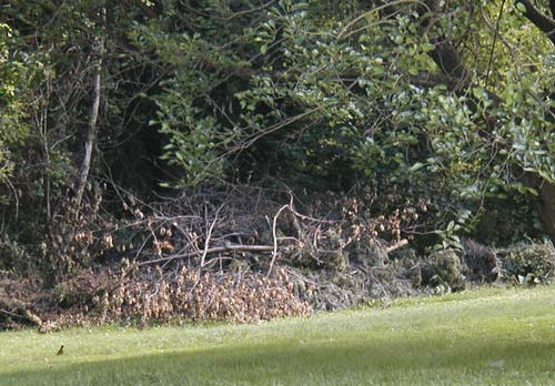 Finally I pulled out my phone and called Ann and we talked until I finished and a crazy storm rolled in. Unfortunately, I have no pictures. I will take some tomorrow when I swing by. As you may have noticed, I got a few pictures in. The one above is the hedges, and the one to the right is the brush pile (about 5 ft tall).