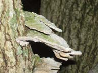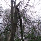 So, where did all the fuel come from? Several places actually. First of all we had a large supply left from the multiple prunings of the shrubs and felling of trees. Next we have the additional material that was brought to us thanks to mother nature. There were several huge windstorms that brought down a number of trees. I borrowed Kos's chainsaw and cut up some of the grounded trees. After that I chopped a few other dead ones down (creepy mushrooms too). Look at them go! | ![]() |