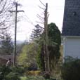 Along the west side of the house there is one remaining hemlock tree. It is about 2 feet from the house, and 15' from a powerline. Not a very safe place to go playing around with chainsaws. I found someone that could take it down that was insured. Sadly this meant it was expensive. But it was quick and stress free. Steve and I brought the tree bits back to the woods that night. With the tree down, I can get myself a nice garden on that side. Lets see if I can pull it off. | ![]() |