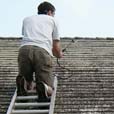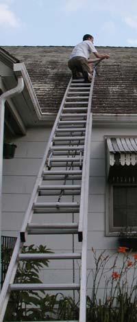 Today I found out that the insurance company won't cover me cause of the asbestos roof. So I found a new place that said they would, as long as the roof was in good condition. I decided it was time to get some shingles put back up, and make an attempt to clean the moss/mold. Step one, get a ladder.