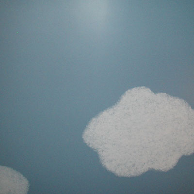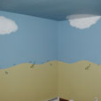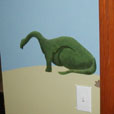 The first night in my house, Jul and I went over to get some painting done. I felt the need to document the dino's that once lived in his room. Clouds on the ceiling too. Primer came through and wiped them all out.