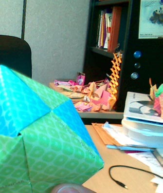 I have a day by day calendar. Each day I get origami instructions and make it while I am at work. It's my daily therapy. Friday, April 13 my calendar started me on a cube. It would take 6 pieces and 6 days.