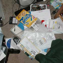 radios, a sticker, ear pieces for my cell phone and a Cap'N