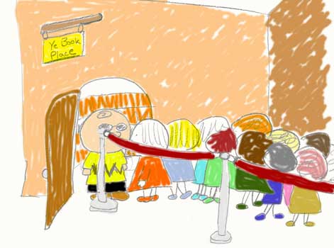 Bree fits in well with the book loving crowds in London. Often times the book stores are filled with people reading. I think it's funny that they let you sit around and read things that you should be buying. I guess they get lots of people that actually buy things, like test driving cars. I bet if they have enough people trying to get into anywhere, it makes it cooler to go there and find out what is inside.