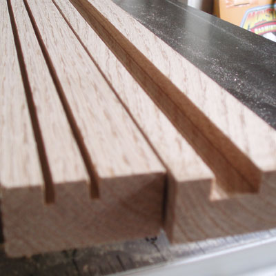 For the shelf I had to make something a little more solid and easy to attach. 4 boards were cut to fit within the upright legs and act as supports. I used the table saw to make a 1/2\" slot into the boards. I made two 1/4\" deep groves in it so that the spacing was correct and then ran it through repeatedly at different widths to cut away the middle. There are better ways to do this but I am most comfortable with this method since it lets me be more accurate. I need all the help I can get!