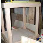 As you may recall, Liza's cabinet looks something like a box kite. I added panels to 3 sides of it and left one open. This stand will have all sides open. Partly because I want to it to be lighter so it is easier to move. In addition to the general frame, I needed to add in a shelf. This way the projector will have a place to sit when it is stored. I am not sure if I want to close it up further since I do have other things to put in there (cables and the screen) but for now I am keeping it simple.